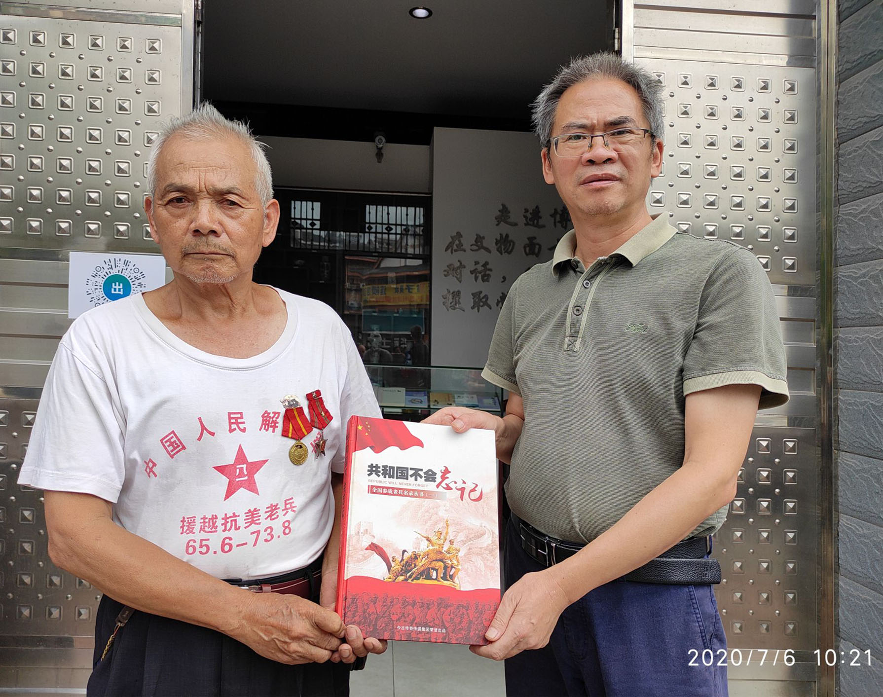 2020年7月6日上午,贺州籍援越抗美老兵代表齐聚贺州市博物馆,馆长胡庆生同志热情接待了他们。据悉,此次老兵代表们齐聚博物馆,是为了向我馆捐赠纪事碑,该碑记录了他们上世纪六十年代援越抗美的英雄事迹。与此同时,贺州籍援越抗美老兵协会的黄会长还向我馆捐赠了《共和国不会忘记——全国参战老兵记录丛书(一)》一书。