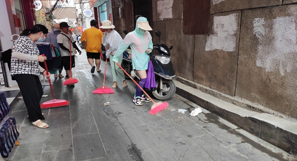 下午3点30分,顶着34度的高温,我馆干部职工拿着扫把、垃圾铲、镰刀、小铲子等工具,齐心协力对责任区大众巷、向阳路、利群巷、体育路区域包路段展开了全面的清扫,对沿街绿地、人行道路以及花草丛中的死角进行彻底清除,并将清理出的白色垃圾和其它杂物运送到附近的垃圾箱内。